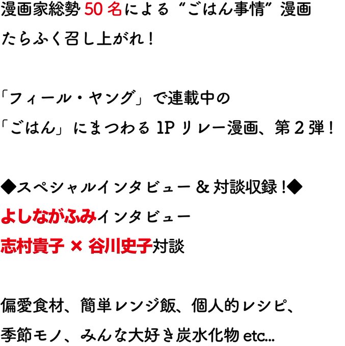 漫画家ごはん日誌 第2弾によしながふみら 志村貴子 谷川史子対談も コミックナタリー